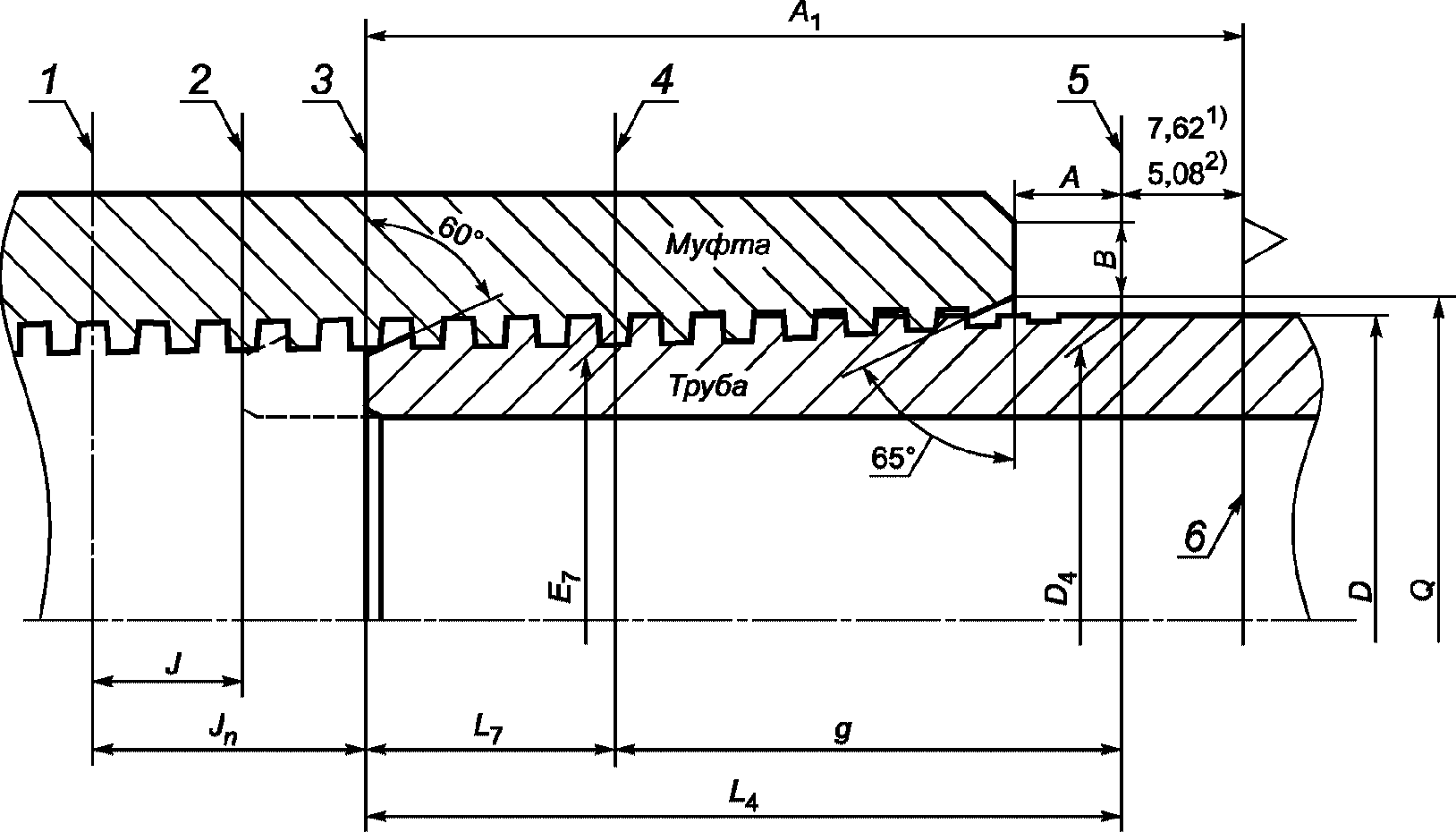 3.1.6 минимальная толщина стенки трубы под резьбой (minimal thickness under pipe thread): Условная толщина стенки под впадиной резьбы трубы, характеризующая устойчивость резьбовой части конца трубы к разрушению при воздействии разнонаправленных напряжений.