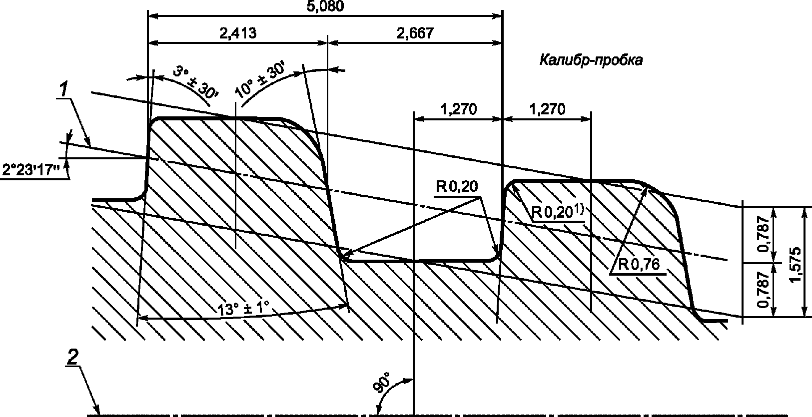 - размер калибра - по обозначению номинального диаметра резьбы в дюймах;