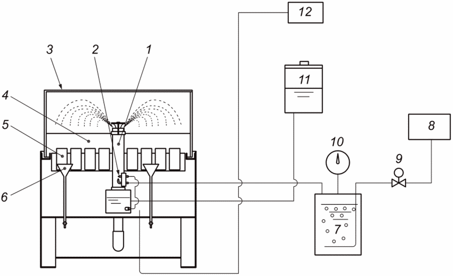 B.2.4 Определение изменения массы контрольного образца По окончании испытаний контрольные образцы извлекают из камеры, промывают в проточной воде и ополаскивают дистиллированной водой. Затем образцы выдерживают при температуре от 20 °C до 25 °C в течение 10 мин в свежеприготовленном растворе, состоящем из 1000 см3 соляной кислоты (по ГОСТ 3118, ч.д.а., плотностью 1,19 г/см3), 10 г уротропина (по ГОСТ 1381) и 1000 см3 дистиллированной воды. После этого образцы промывают в проточной воде, ополаскивают дистиллированной водой, высушивают в сушильном шкафу при температуре (60 +/- 10) °C и охлаждают до комнатной температуры в эксикаторе. После охлаждения образцов определяют массу каждого контрольного образца после испытаний с точностью до 0,001 г. Затем рассчитывают изменение массы контрольного образца на единицу площади поверхности, подвергнутой воздействию соляного тумана, , г/м2, по формуле  , (B.1) где m1 - масса контрольного образца до испытаний, г; m2 - масса контрольного образца после испытаний, г; S - площадь испытуемой поверхности контрольного образца, м2. B.2.5 Определение коррозионной активности камеры соляного тумана Коррозионная активность камеры соляного тумана считается удовлетворительной, если изменение массы на единицу площади испытуемой поверхности каждого контрольного образца составляет: - (70 +/- 20) г/м2 - при испытании в нейтральном соляном тумане в течение 48 ч; - (40 +/- 10) г/м2 - при испытании в кислом соляном тумане в течение 24 ч; - (55 +/- 15) г/м2 - при испытании в кислом соляном тумане с двухлористой медью в течение 24 ч. |