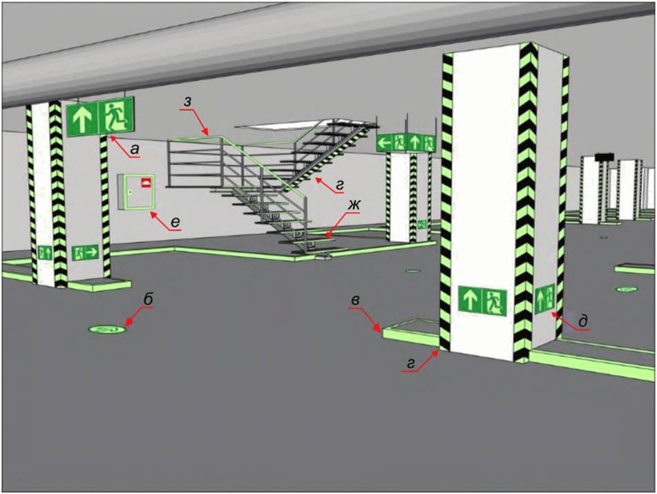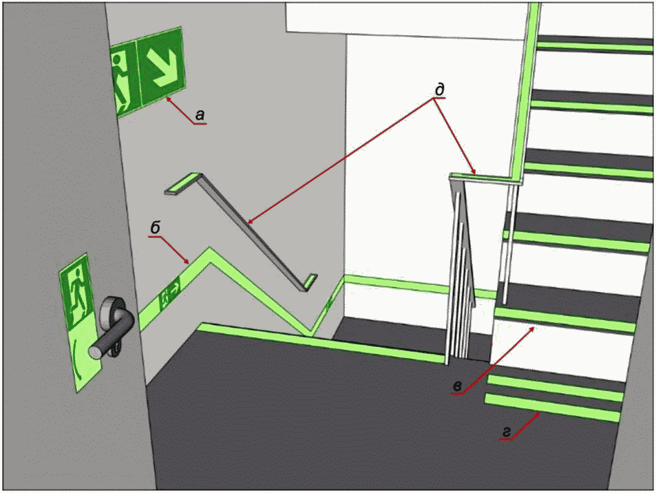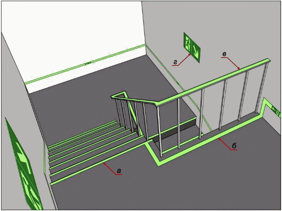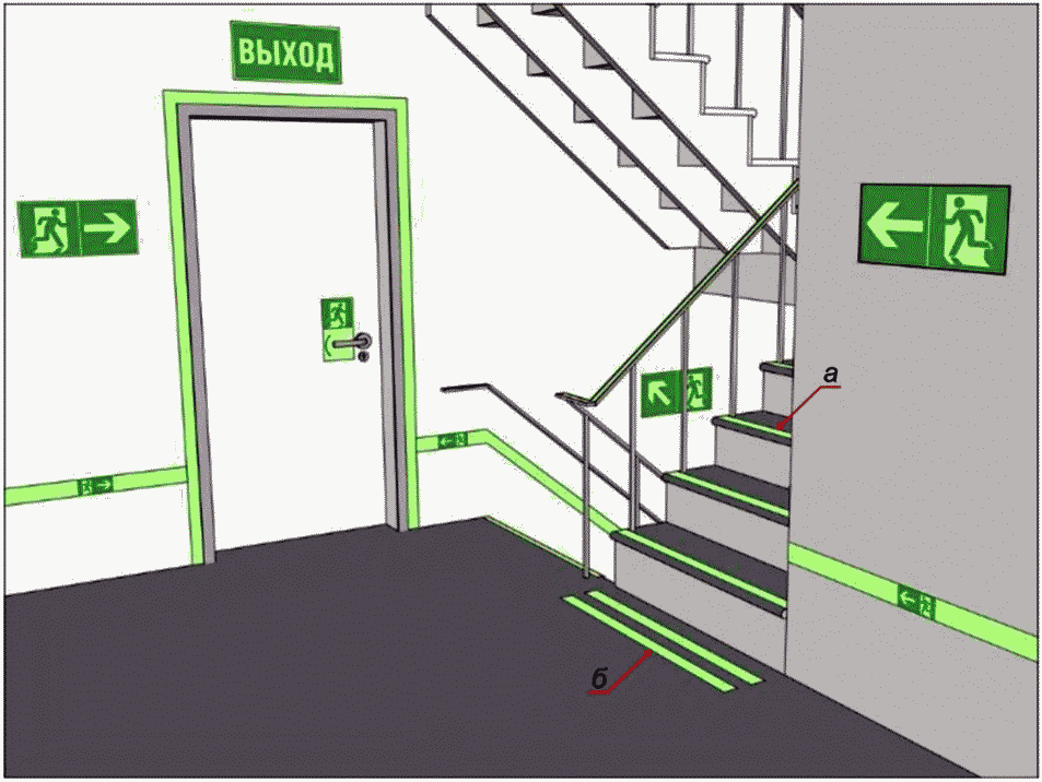 края ступеней фотолюминесцентными полосами; б - обозначение