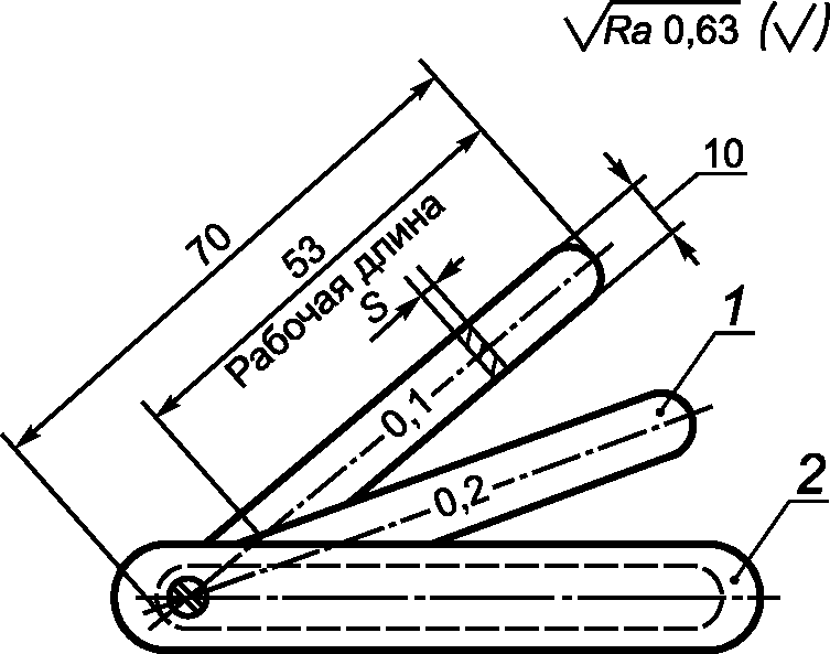 1 - щуп; 2 - обойма; S - 0,1 - 1 мм через 0,1 мм
