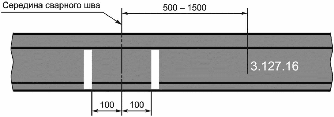 А.4.3 Остряк стрелочного перевода (остряк уравнительного стыка) и примыкающий рельс в местах, подлежащих сварке, в шейке на длине 100 мм, начиная от торца, не должны иметь раскатанных загрязнений, пузырей, трещин (волосовин), выбитых или нанесенных методом горячего клеймения номеров.