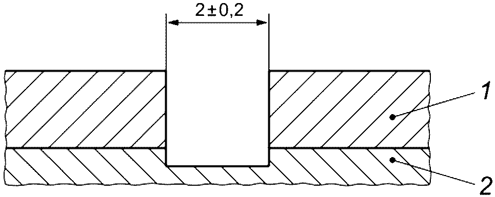 Линия надреза (см. рисунки A.1, A.2) на покрытии должна быть выполнена на каждом образце в группе, подвергаемой испытаниям, где надрез покрытия требуется. Надрез покрытия производят для обеспечения полного воздействия на все элементы системы покрытия, участвующие в испытаниях. Надрез может быть выполнен механическим способом (таким инструментом, как сверлильный станок с кобальтовой фрезой). Длина надреза должна быть не менее 50 мм, ширина - (2,0 +/- 0,2) мм. Надрез должен быть расположен не ближе чем на 12,5 мм от каждого длинного края и не ближе чем на 25 мм от одного из коротких краев образца. Надрез должен быть сделан на всю толщину покрытия, до поверхности углеродистой стали образца.