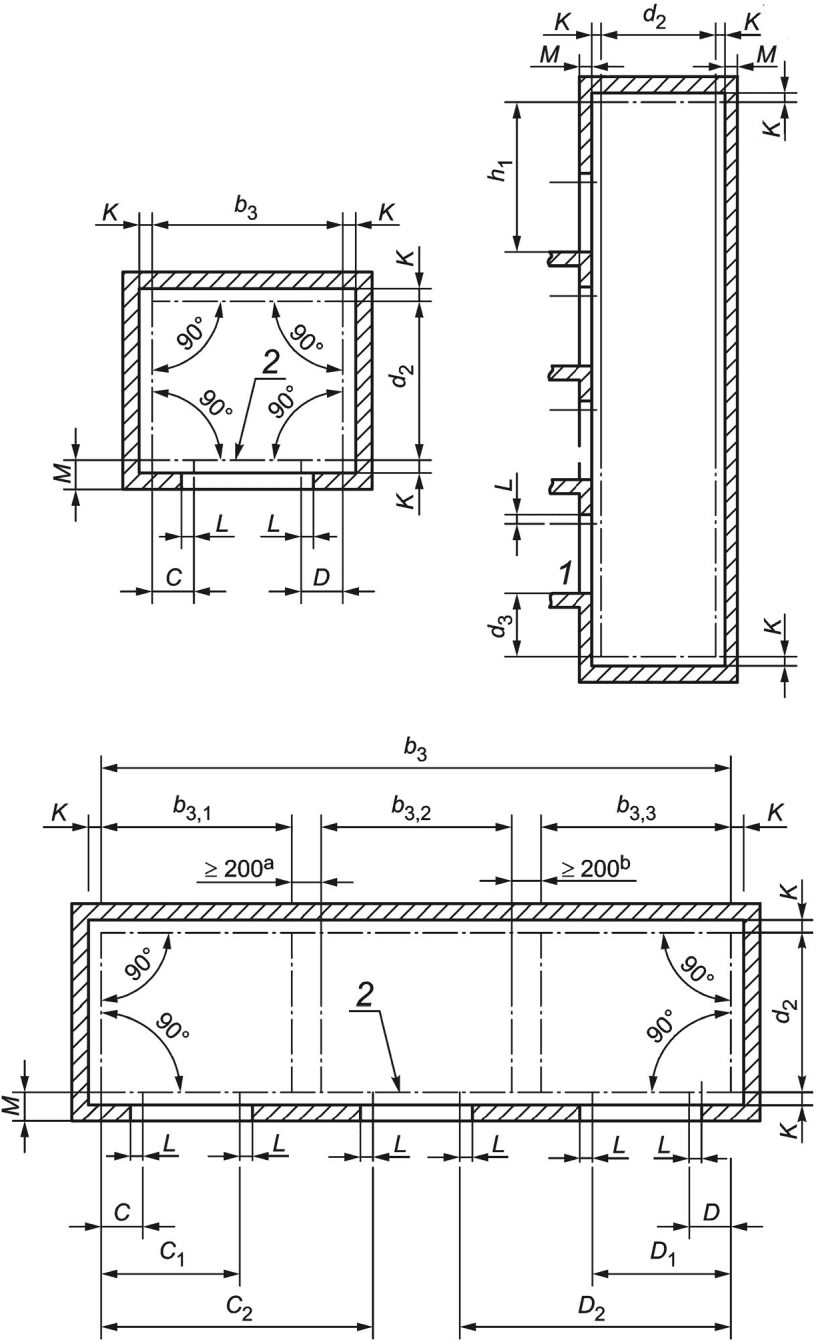 b3 - ширина шахты; d2 - глубина шахты; d3 - глубина приямка;