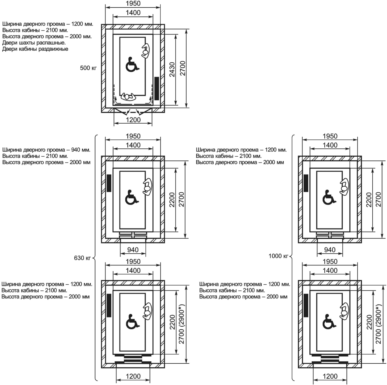 1.4 Основные параметры и размеры лифтов могут отличаться от включенных в настоящий стандарт при условии соблюдения требований безопасности, установленных в техническом