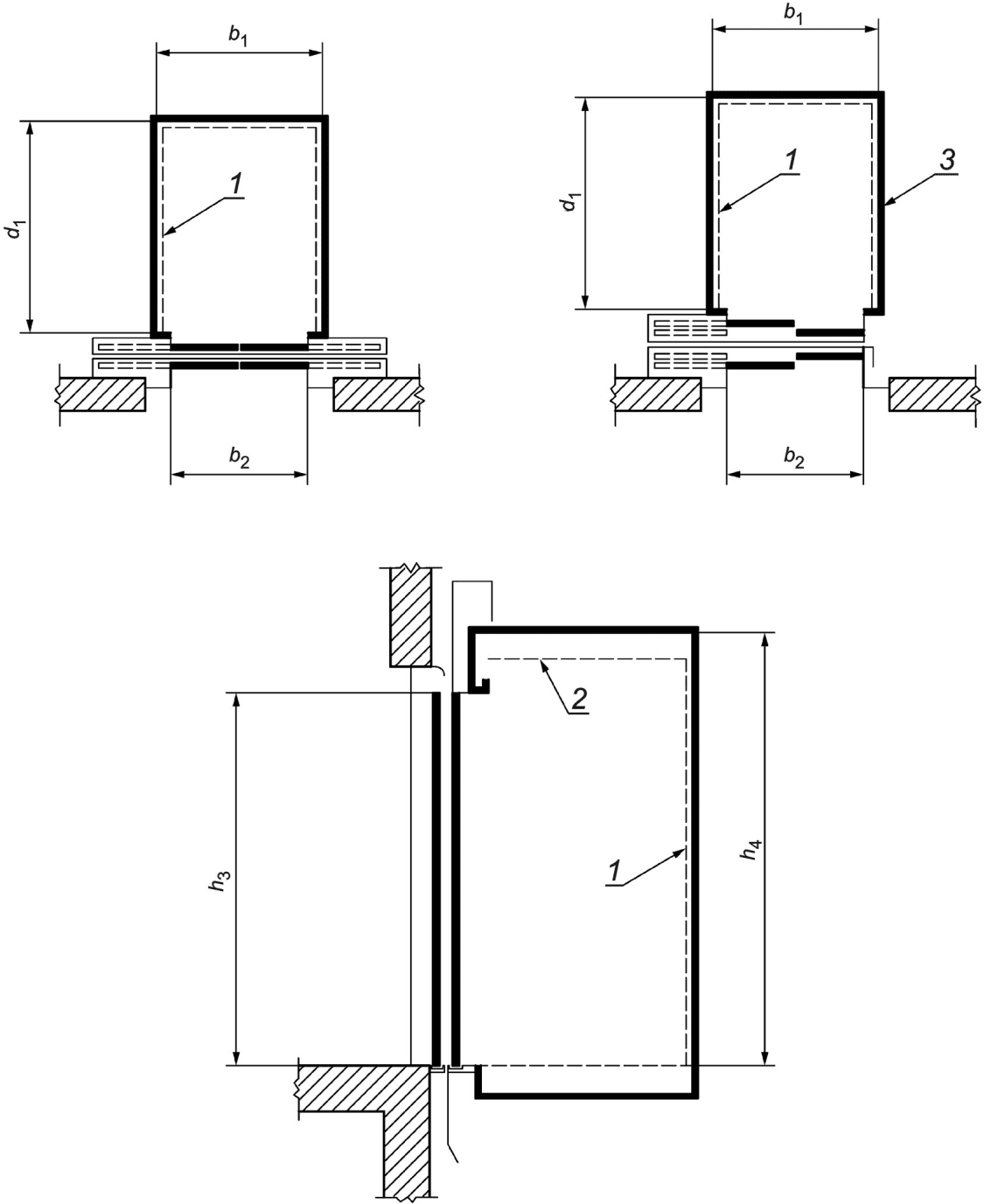 и дверей шахты; d1 - глубина кабины; h3 - высота дверей