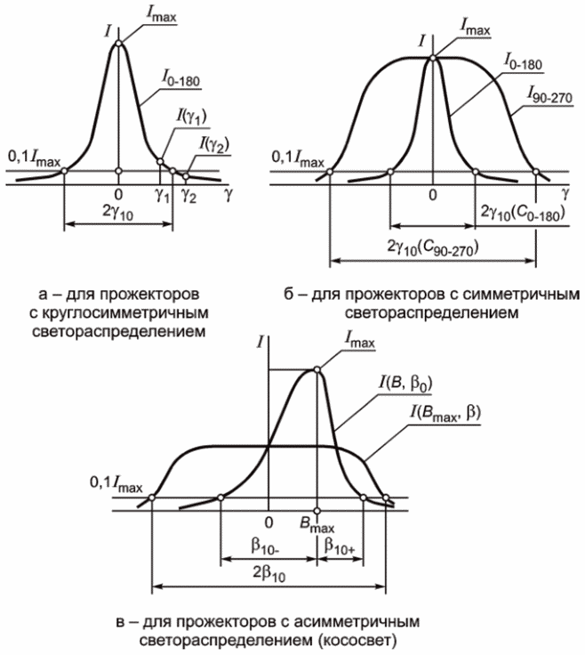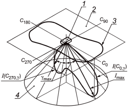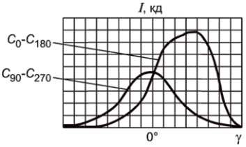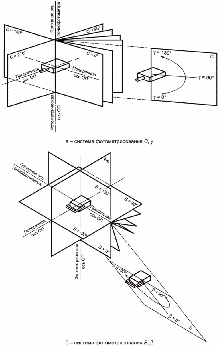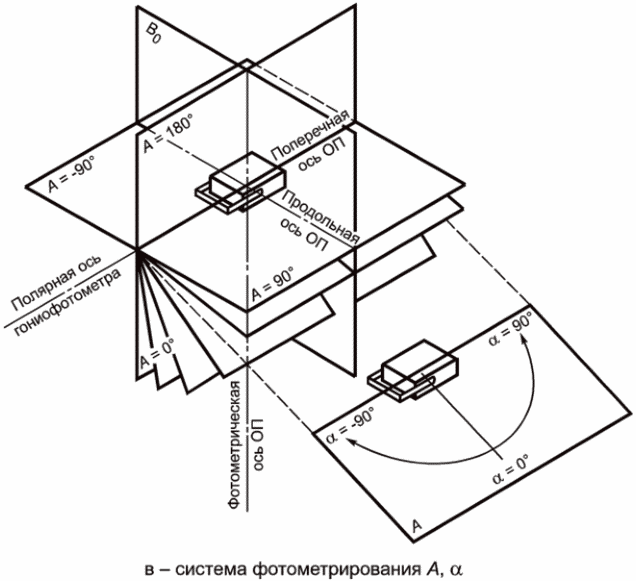 рисунок А.1б приложения А). Для асимметричных осветительных приборов иногда за главную продольную плоскость принимают продольную плоскость, проходящую через направление максимальной силы света осветительного прибора.