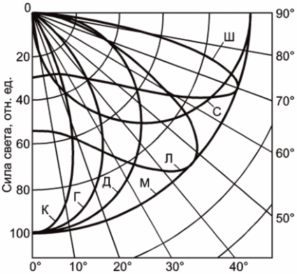 m + 1 - число измеренных значений силы света, ограниченных данной полусферой. Для определения типа кривой силы света в нижней полусфере -