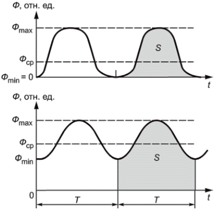 - соответственно максимальное и минимальное значения светового потока за период его колебания, полученные по осциллограмме, отн. ед.;