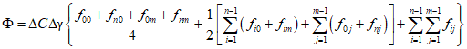 Значение члена f00 + fn0 + f0m + fnm равно сумме значений четырех угловых ячеек (25 кд); значение члена