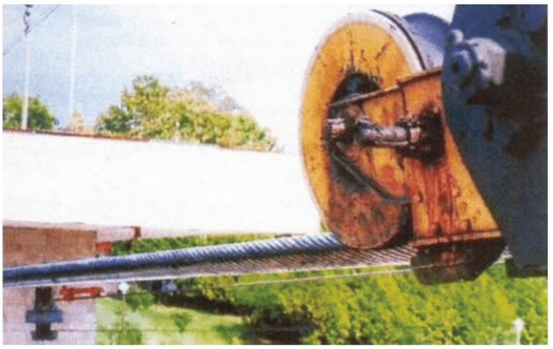 рисунок А.14), нанесенной по всей длине заводом-изготовителем на наружную поверхность прядей этих канатов (в случае, если она нанесена). Полученную информацию специалист фиксирует в журнале осмотра и ремонта, с указанием выявленных дефектов и сроков их устранения.
