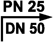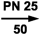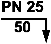 | Обязательный | Номинальное давление PN | Знак представляет собой обозначение номинального давления по ГОСТ 26349. Основной вариант маркировки - в "бар" или "кгс/см2" без указания единицы измерения. Допускается маркировать в МПа с обязательным указанием единиц измерения. Пример - Для арматуры на номинальное давление 125 бар (12,5 МПа): PN 125 или PN 12,5 МПа При разных номинальных давлениях входного и выходного патрубков номинальное давление маркируют для входного патрубка или указывают через дробь, при этом в числителе указывают значение для входного патрубка, в знаменателе - для выходного патрубка. Пример - PN 100/PN 40 или PN 10 МПа/PN 4 МПа |