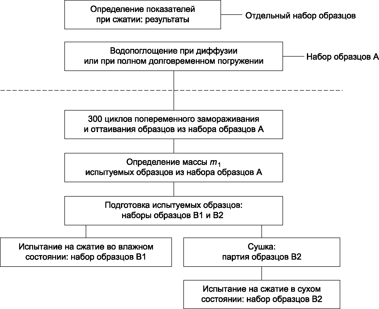 Порядок испытаний по определению характеристик при попеременном замораживании и оттаивании приведен на