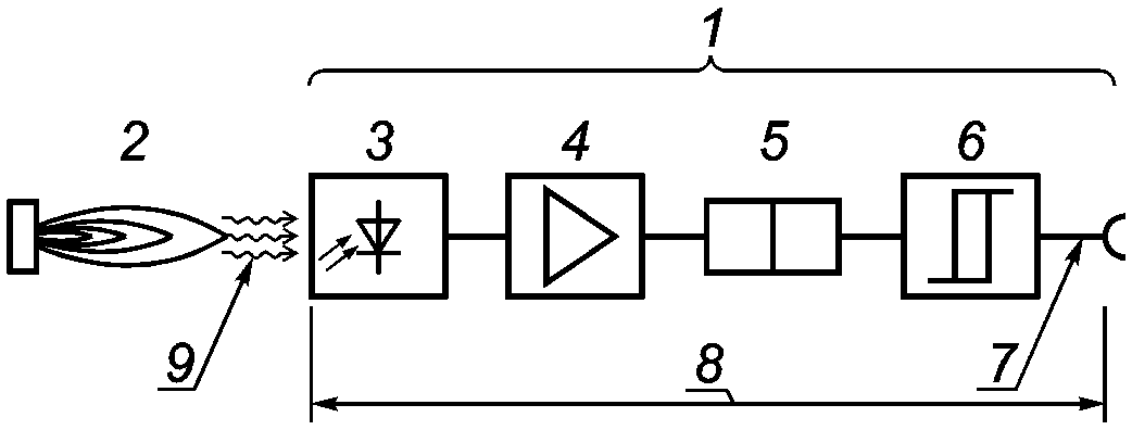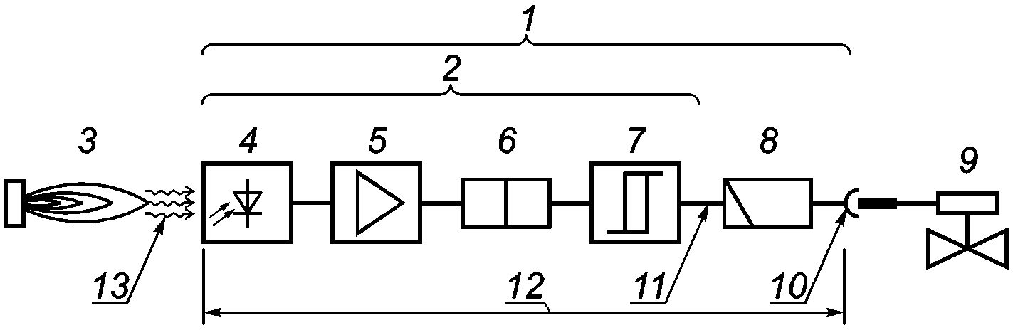 2 - детектор пламени (см. 3.101); 3 - пламя; 4 - сенсор