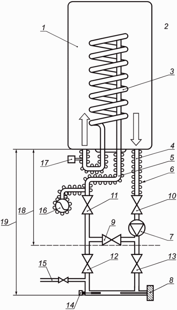 бачок; 17 - регулирующий вентиль; 18 - короткий контур;