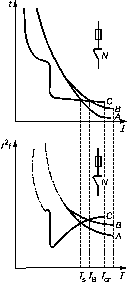 a) характеристики автоматических выключателей;