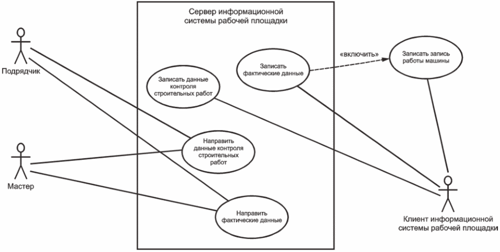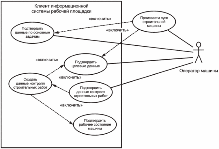 b) обмен информацией между информационной системой на рабочей площадке и строительной машиной: