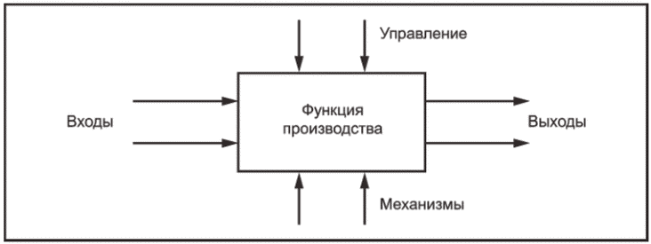 IDEF0 является методом, предназначенным для моделирования решений, действий и деятельности организации. Графическая диаграмма с прямоугольником и стрелками IDEF0 показывает функцию в виде прямоугольника и средства взаимодействия с функцией в виде стрелок, входящих или выходящих из прямоугольника. Для изображения функции прямоугольники действуют одновременно с другими прямоугольниками с ограничивающими стрелками средств взаимодействия, когда и как операции приводятся в действие и управляются. Базовый синтаксис для модели IDEF0 показан на рисунке D.5.