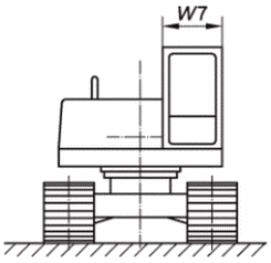 W6 | расстояние от оси вращения поворотной платформы до правой/левой стороны (right/left side upper structure distance from axis of rotation): Расстояние по координатной оси Y между двумя плоскостями Y, проходящими соответственно через ось вращения и крайнюю правую/левую боковую точку поворотной платформы | |