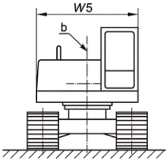 W5 | габаритная ширина поворотной платформы (upper structure overall width): Расстояние по координатной оси Y между двумя плоскостями Y, проходящими через крайние точки на сторонах поворотной платформы | |