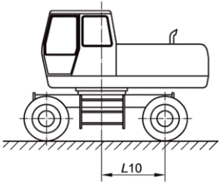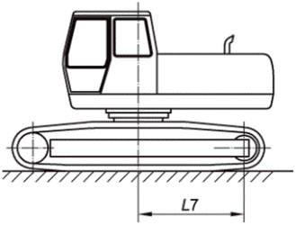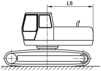L8 | вылет поворотной платформы от оси вращения (upper structure rearmost distance from axis of rotation): Расстояние по координатной оси X между двумя плоскостями X, проходящими соответственно через крайнюю заднюю точку поворотной платформы и ось вращения | |
