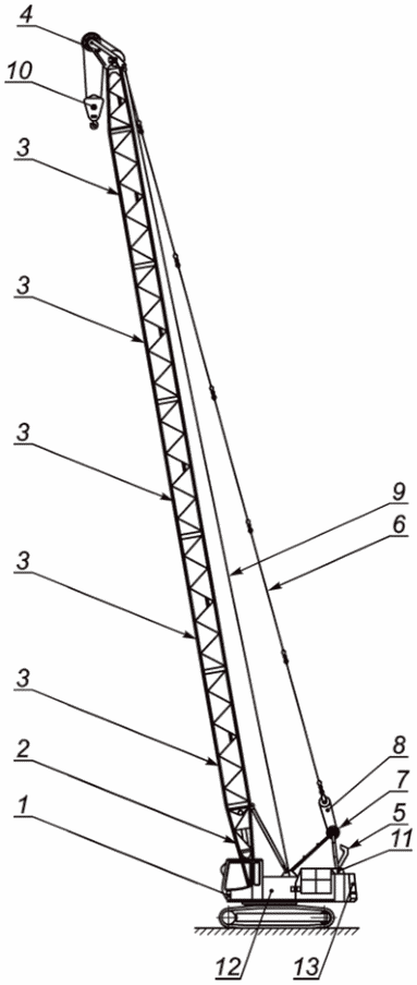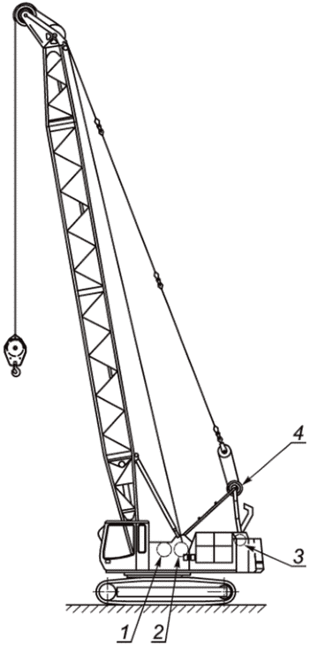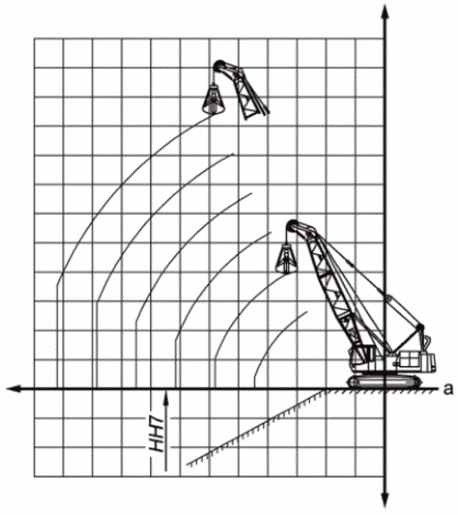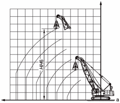 HH1 | высота подъема при применении подъемного оборудования (lifting height of lifting equipment application): Расстояние по координатной оси Z между GRP и осью вращения шкива крюка относительно достижения RR1 и конфигурации стрелы. Примечание - Кривые подъема добавлены в зависимости от угла наклона стрелы и длины стрелы, как показано | |