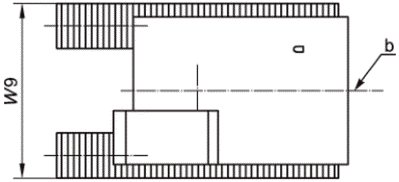 W8 | габаритная ширина шасси (undercarriage overall width): Расстояние по координатной оси Y между двумя плоскостями Y, проходящими через самые удаленные точки на сторонах шасси | |