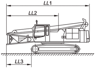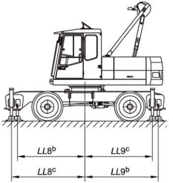 LL1 | габаритная длина в транспортном/погрузочном положении с базовым оборудованием (overall length in transport/shipping condition with basic equipment): Расстояние по координатной оси X между двумя плоскостями X, проходящими через самые выступающие точки в передней и задней частях машины в транспортном/погрузочном положении | |