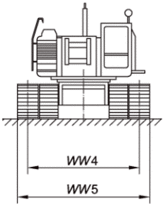 WW6 | габаритная ширина по осям опорных площадок стабилизаторов в максимально выдвинутом положении (overall width of stabilizer and supporting plates in max. extended position): Расстояние по координатной оси Y между двумя плоскостями Y, проходящими через осевые линии опорных площадок стабилизаторов | |