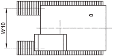 W10 | размер колеи с узкими или широкими гусеницами (track gauge with track extended or retracted): Расстояние по координатной оси Y между двумя плоскостями Y, проходящими через середины зубьев ведущих колес | |