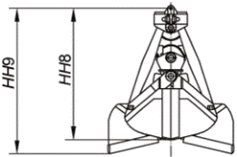 HH8 | высота закрытого грейфера (height of closed clamshell): Расстояние по координатной оси Z между двумя плоскостями Z, проходящими соответственно через шарнир грейфера и самую нижнюю точку захватов в закрытом положении | |