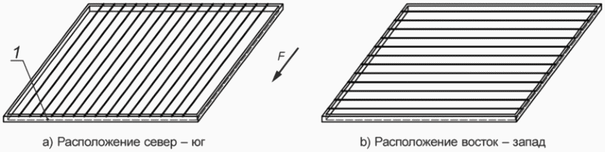 Примечание - Для труб с наружными профилями, создающими теневые участки при выравнивании север - юг, предпочтительно выравнивать ось трубы с осью восток - запад [см., например,