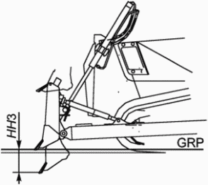 HH2 | Высота подъема Расстояние по оси координат Z между GRP и низшей точкой режущей кромки в верхнем положении отвала в средней его точке, без наклона и перекоса или расстояние между GRP и низшей точкой рыхлителя в верхнем положении | |
