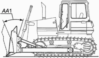 AA1 | Угол наклона Максимальный угол в плоскости Y описываемый верхней частью отвала или зубом рыхлителя при повороте между передним и задним положением отвала или зуба рыхлителя относительно своих шарниров Измерения проводят в положении режущей кромке отвала или зуба рыхлителя на GRP | |