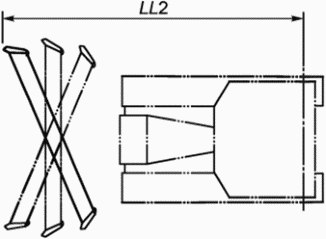 LL2 | Передняя проекция поворотного отвала Расстояние по координате X между двумя плоскостями X, проходящими через ось ведущей или натяжной задней звездочки гусеничной машины или ось заднего колеса колесной машины и концом крайней секции ножа при максимальном угле поворота отвала. Измерения проводят в положении отвала на опорной поверхности в средней его точке, без перекоса, но при максимальном угле поворота, рабочее оборудование на GRP | |