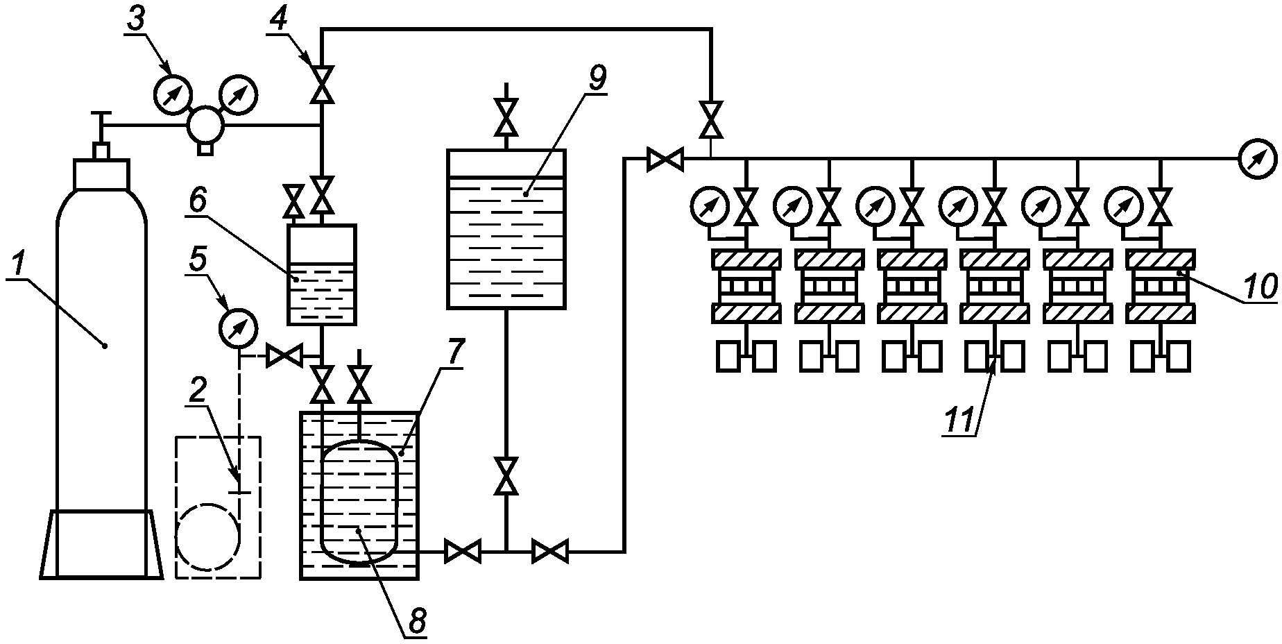 камеры; 4 - вакуумметрический датчик; 5 - вакуумнасос;