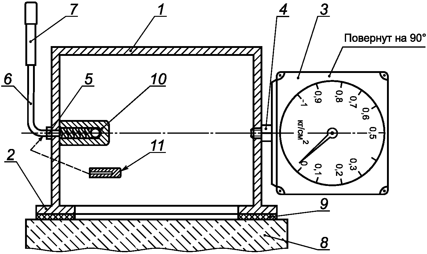 - начальное давление прижатия фланца камеры к поверхности бетона образца должно быть не менее 0,05 МПа;