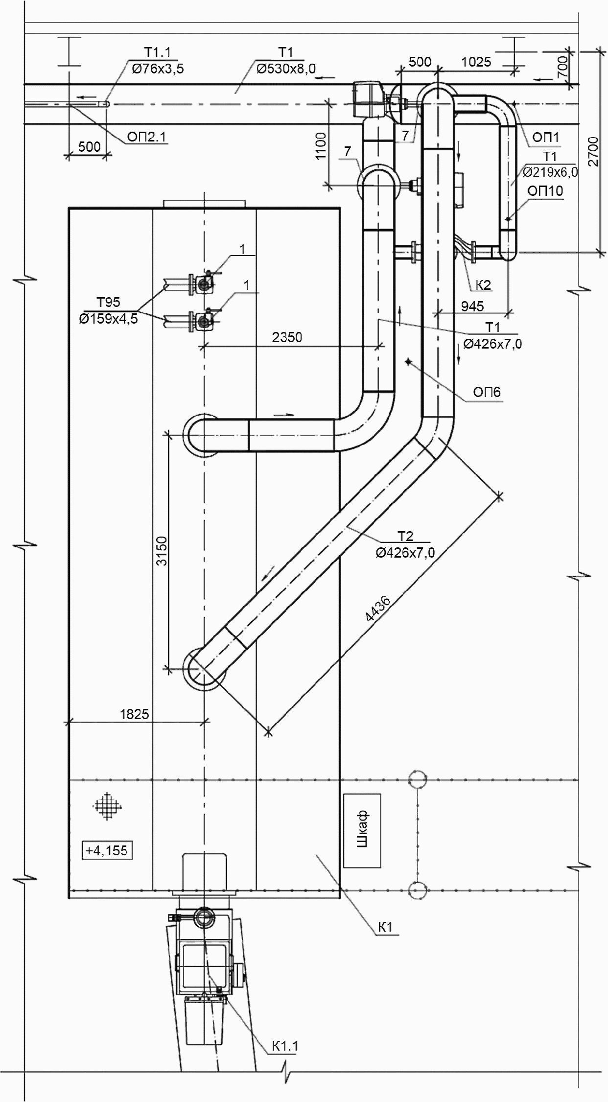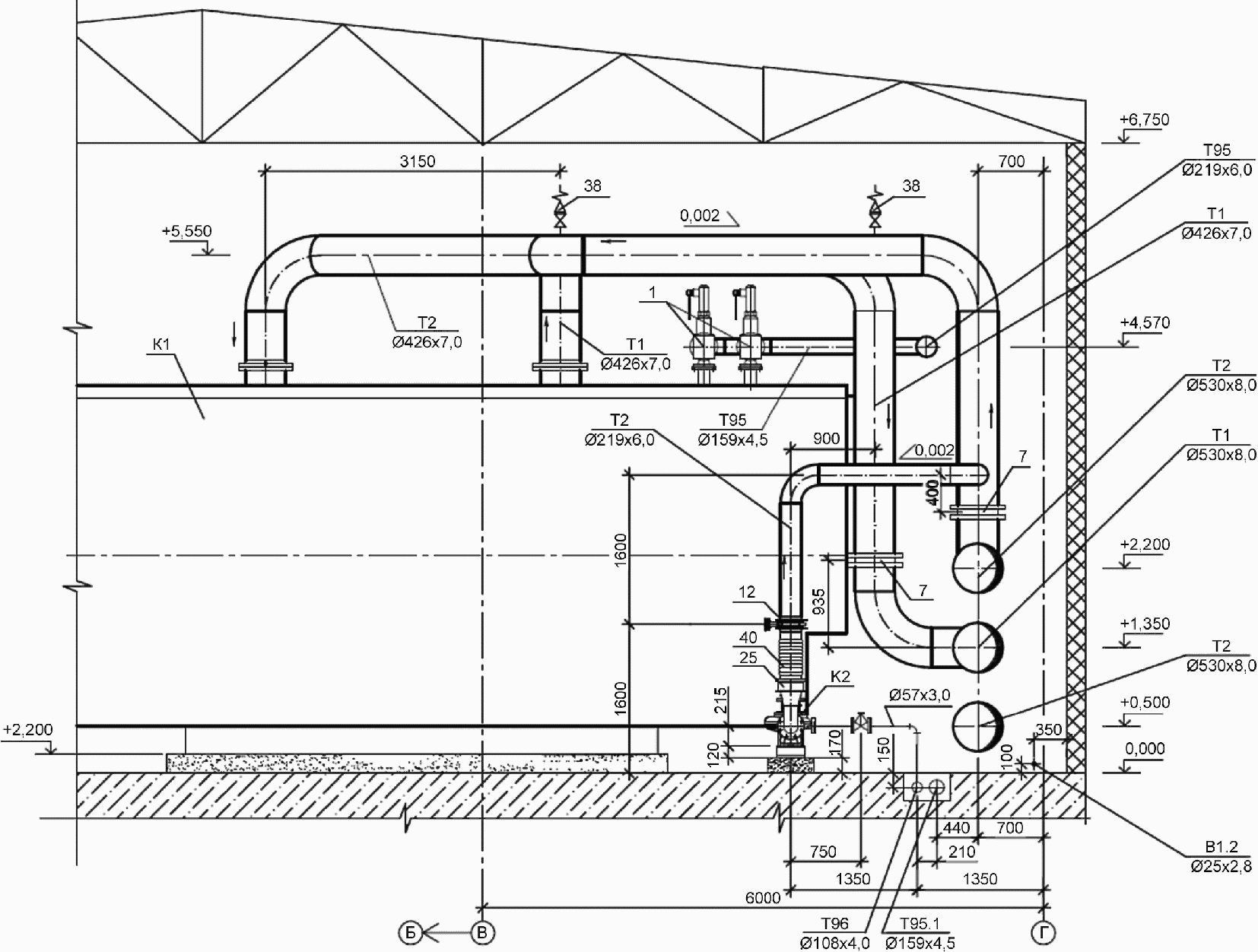 2 Трубопровод непрерывной продувки | Т92 | 6 Трубопровод дренажный безнапорный | Т96 |