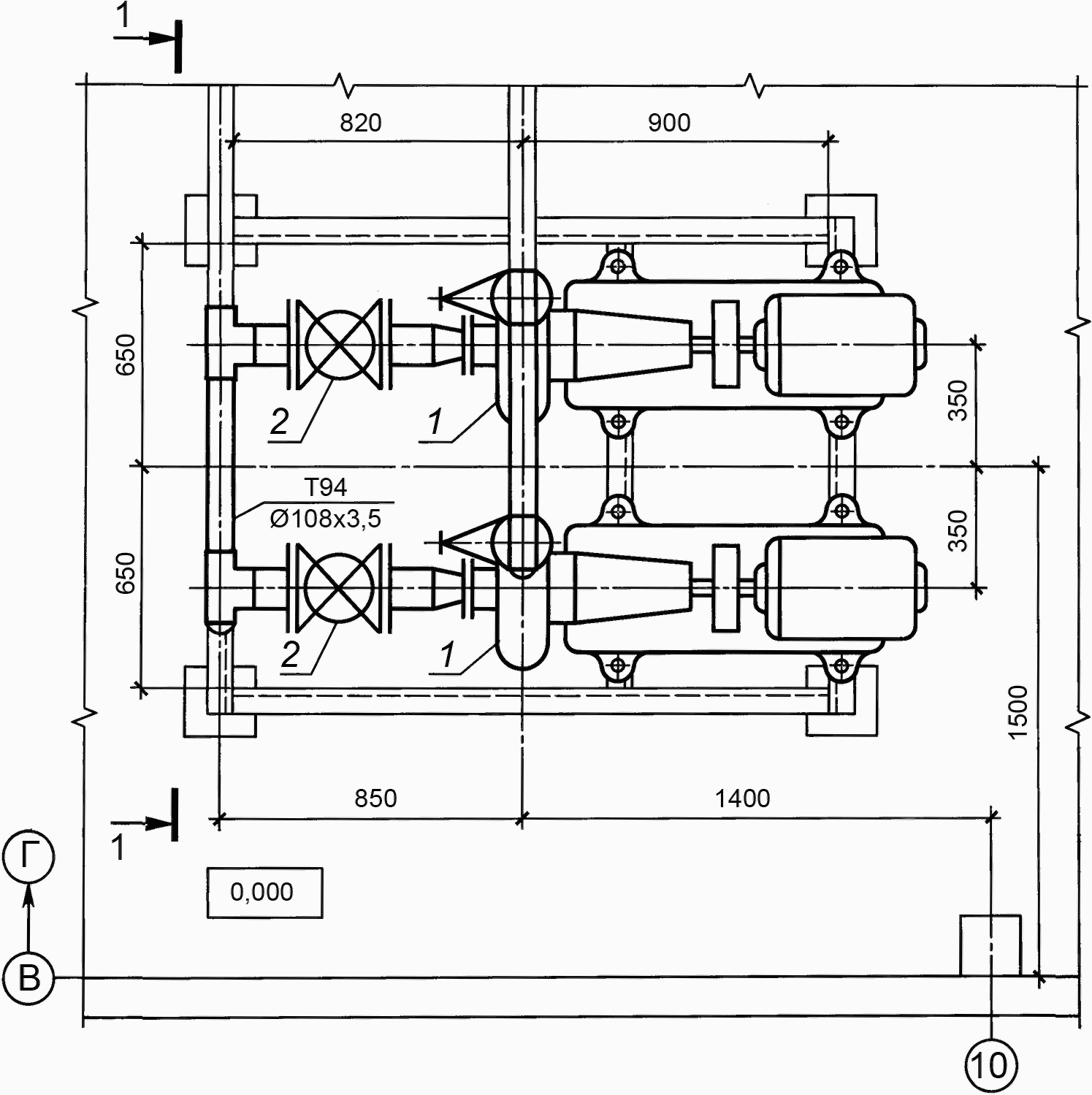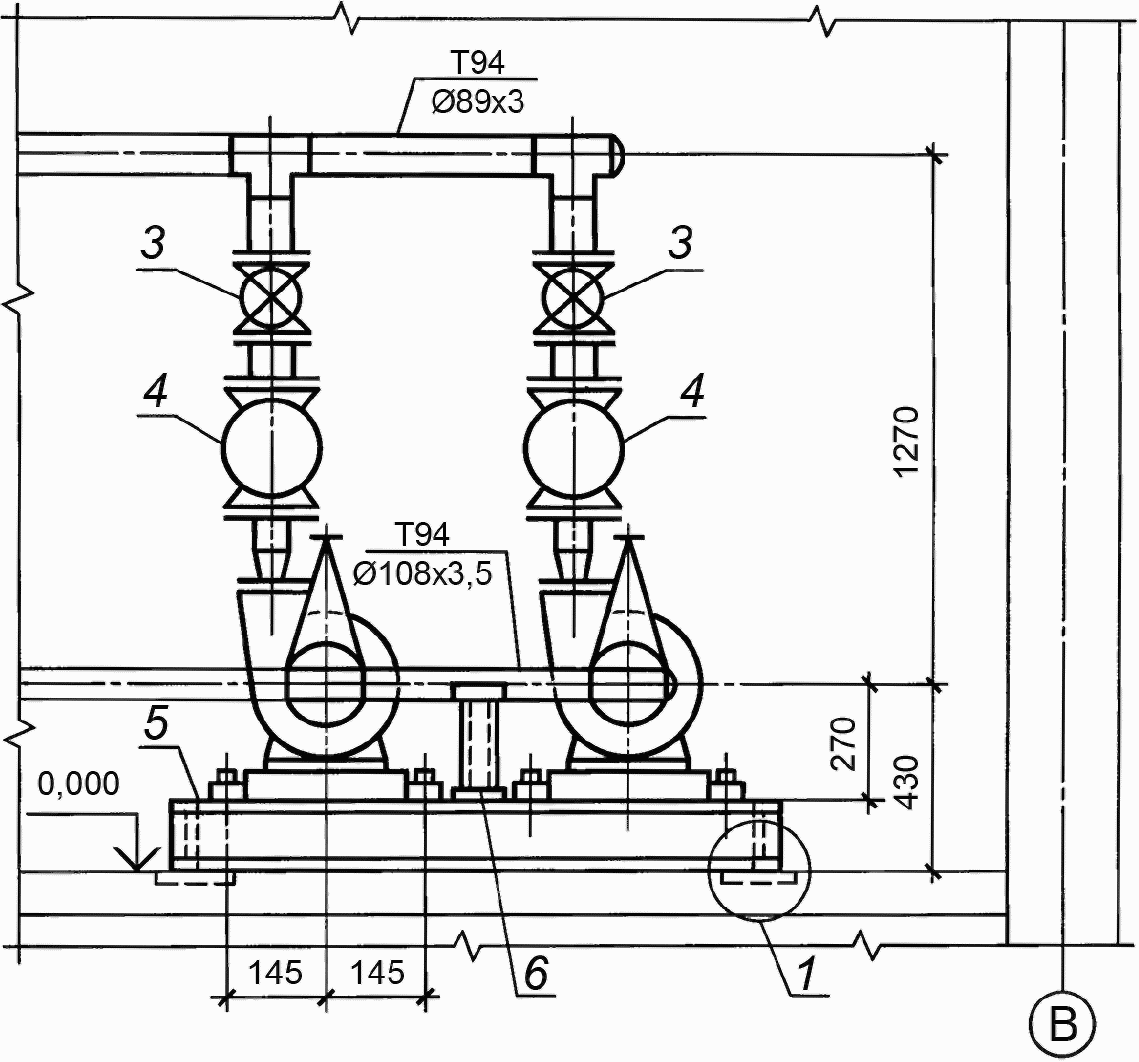 Рисунок Г.3 - Пример выполнения разреза установки насосов