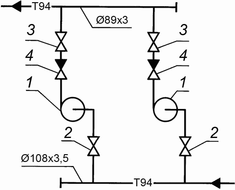 Рисунок Г.1 - Пример выполнения схемы установок насосов