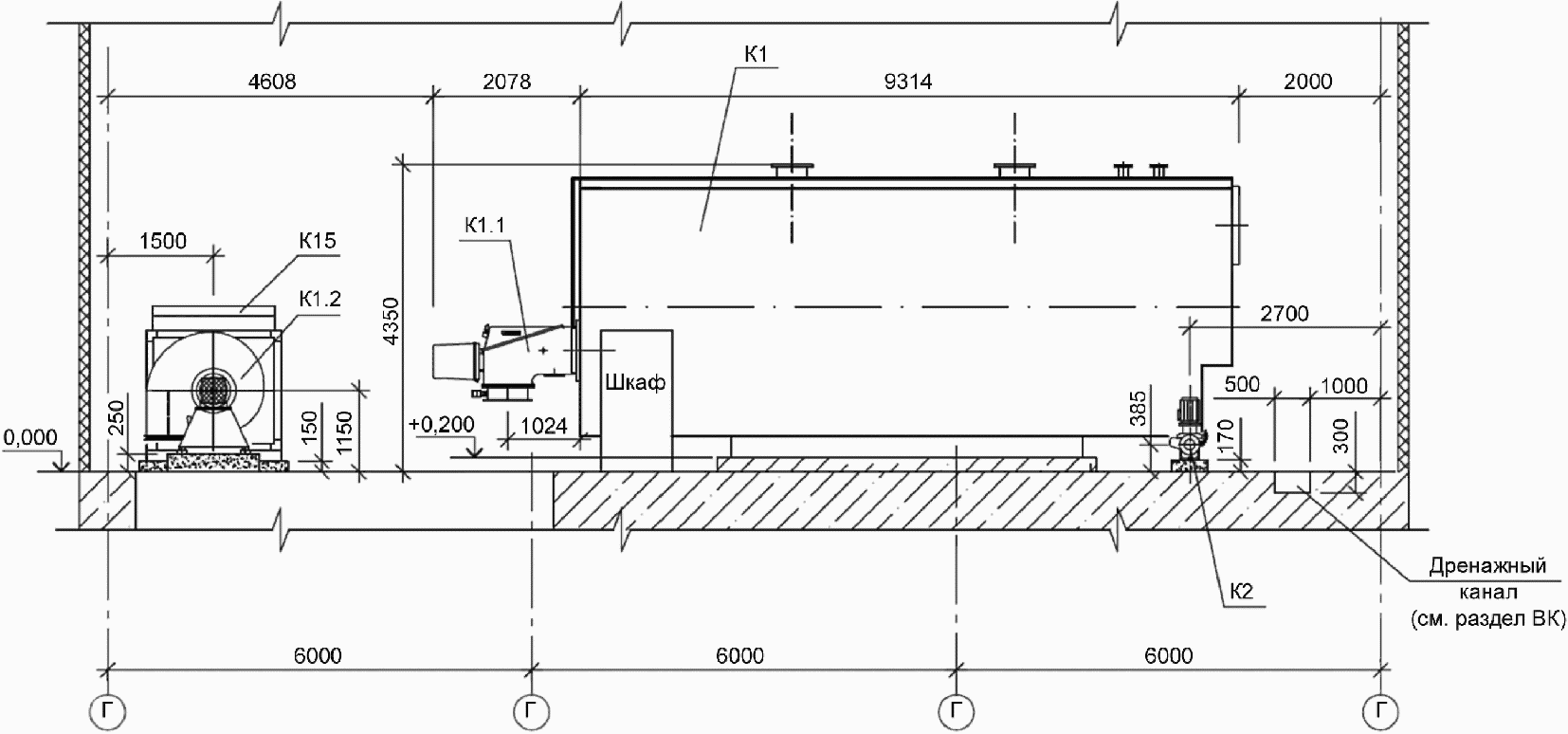 4.6 Тепломеханическое оборудование, установки (блоки), воздуховоды и газоходы обозначают маркой "К" с добавлением порядкового номера в пределах марки.