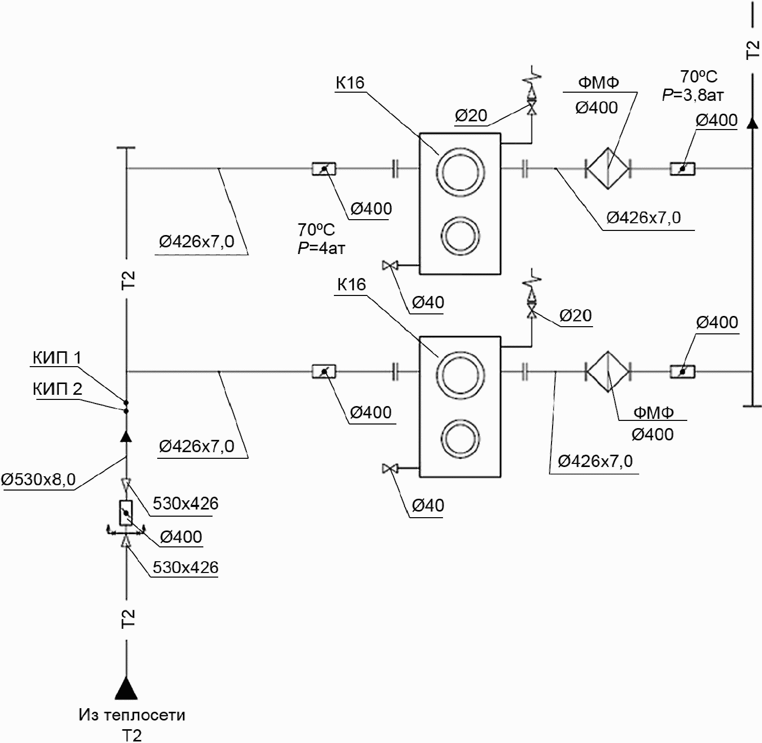 4 Трубопровод подпиточной воды | Т94 | 8 Трубопровод паровоздушной смеси | Т98 |