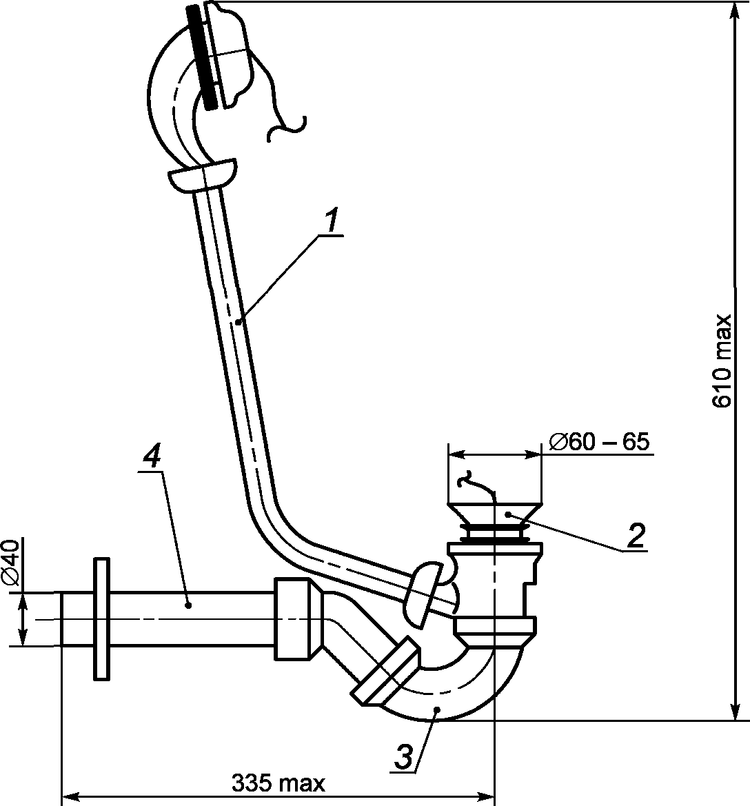 СВПГ | Сифон с выпуском и переливом для ванн и глубоких душевых поддонов | |