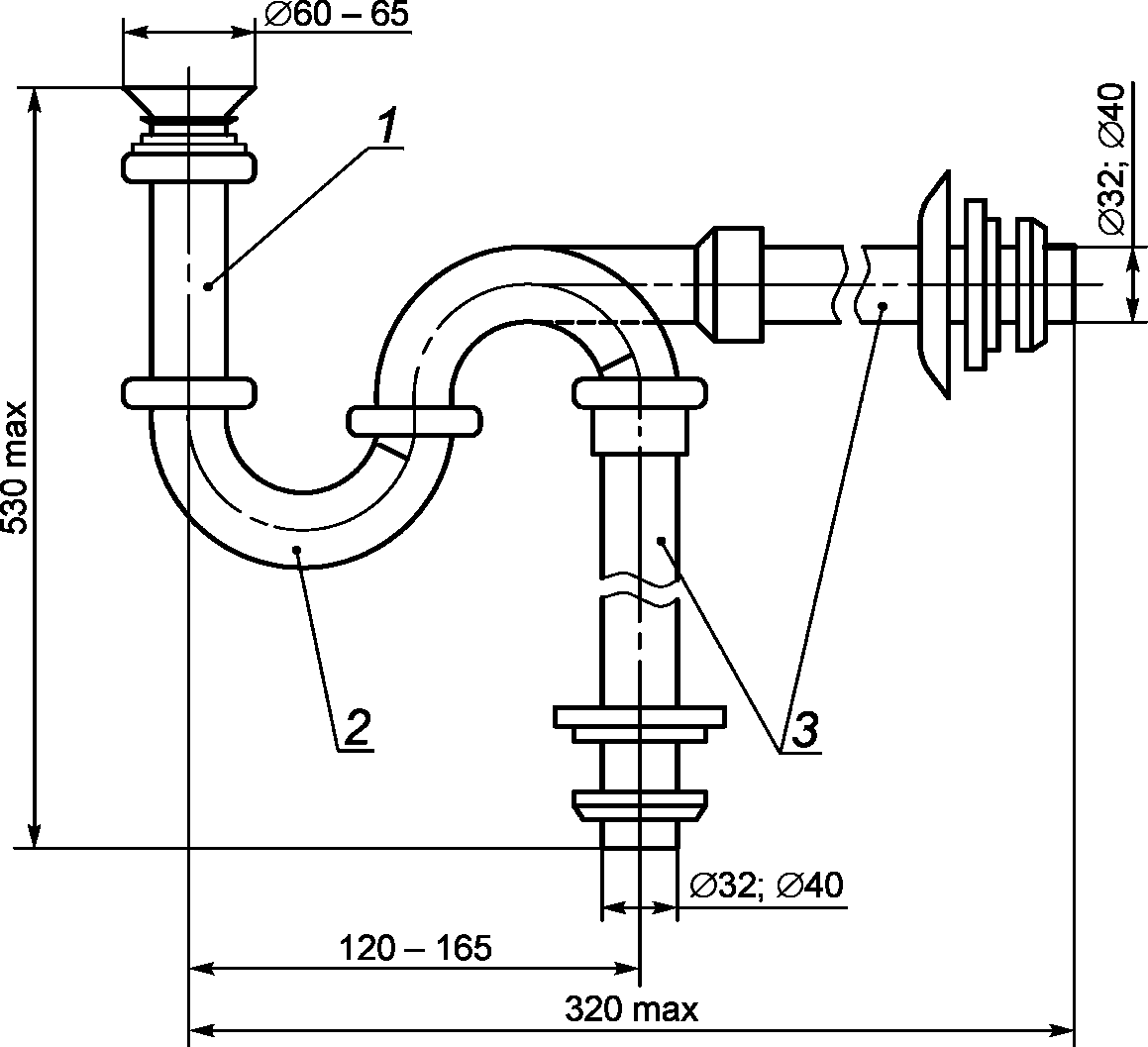 СТУ | Сифон трубный с унифицированным выпуском, горизонтальным или вертикальным отводом для умывальников, моек, биде | |