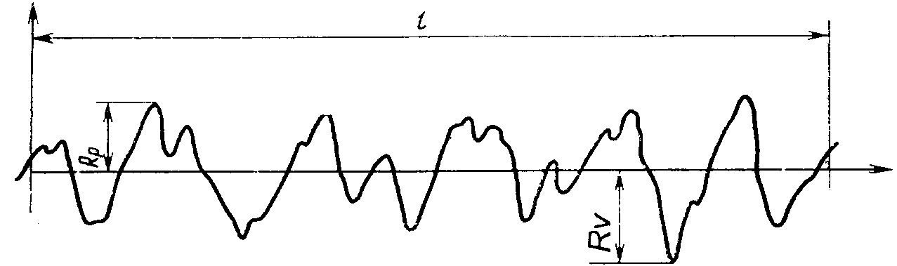 Сумма высоты наибольшего выступа профиля Rp и глубины наибольшей впадины профиля Rv в пределах базовой длины l (черт. 27) | |
