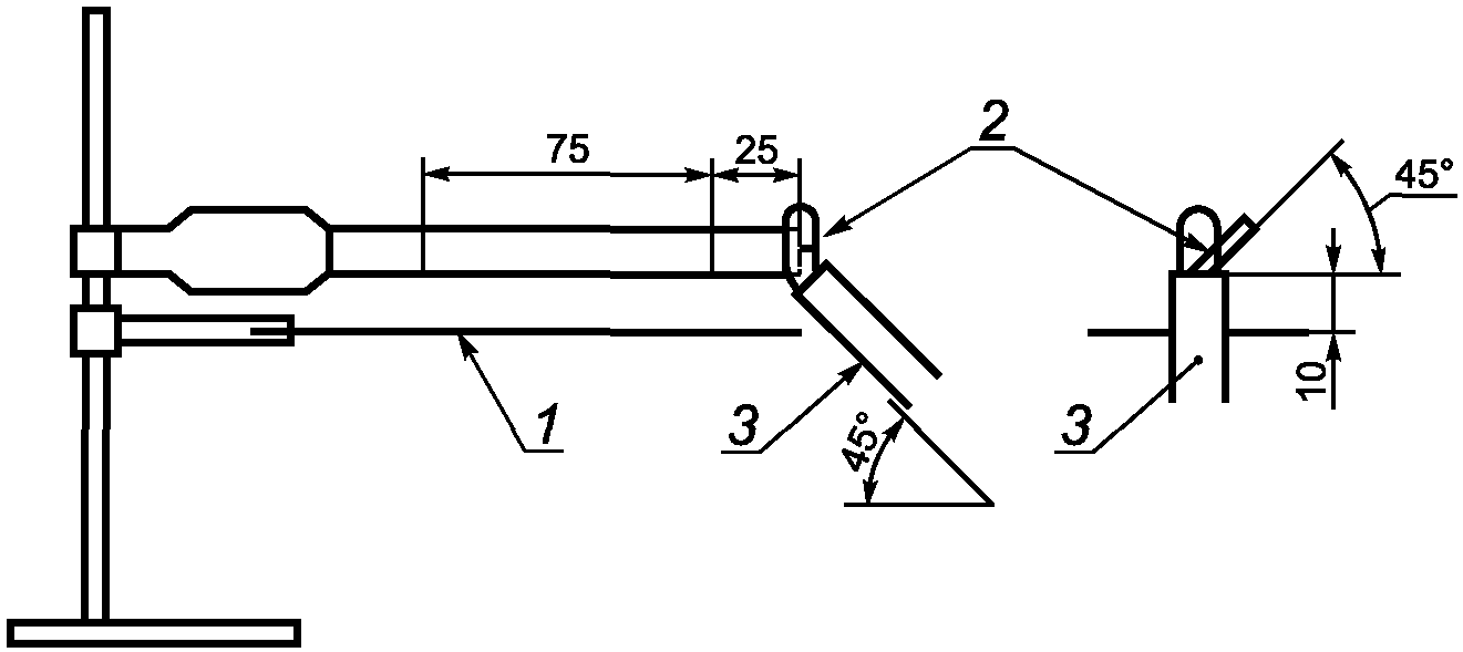 7.2.1 Штатив с зажимом для крепления образцов и горелку помещают в испытательную камеру или лабораторный вытяжной шкаф.