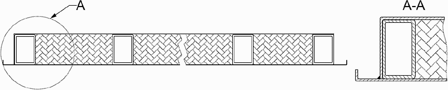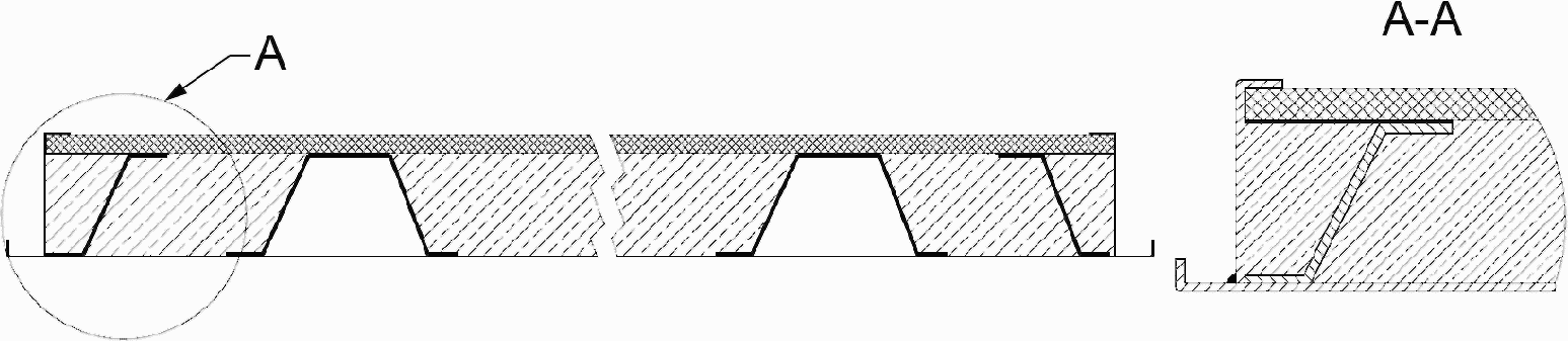 Полотно типа "сэндвич" с двумя профилированными и завальцованными между собой стальными листами, с Г-образными стальными усиливающими профилями и заполнением из минеральной ваты высокой плотности