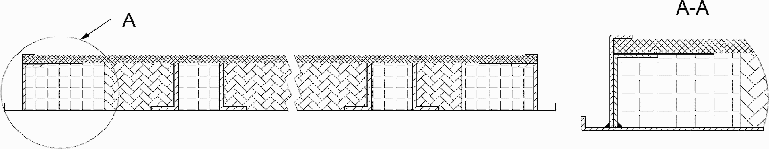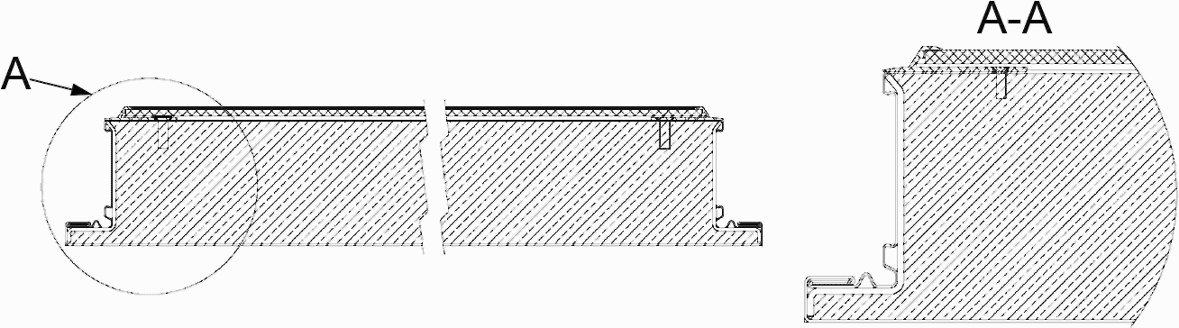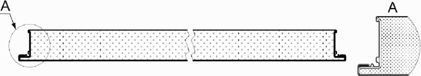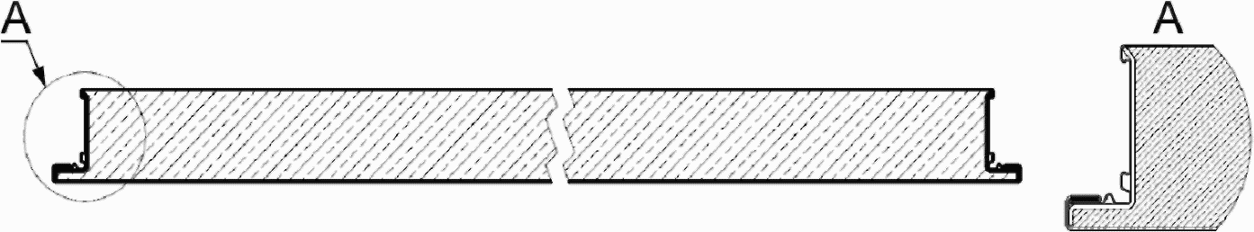 Полотно типа "сэндвич" с двумя профилированными и завальцованными между собой стальными листами, с Г-образными стальными усиливающими профилями и заполнением из пенополиуретана с облицовкой из древесины или древесно-плитных материалов (горизонтальное сечение)