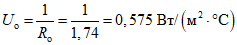 Гладь панели | a = 1 м2/м2 | U = 0,575 Вт/(м2·°C) | U·a = 0,575 |