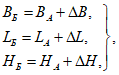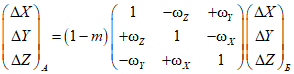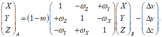 Преобразование приращений пространственных прямоугольных координат из системы координат А в систему Б осуществляют по формуле